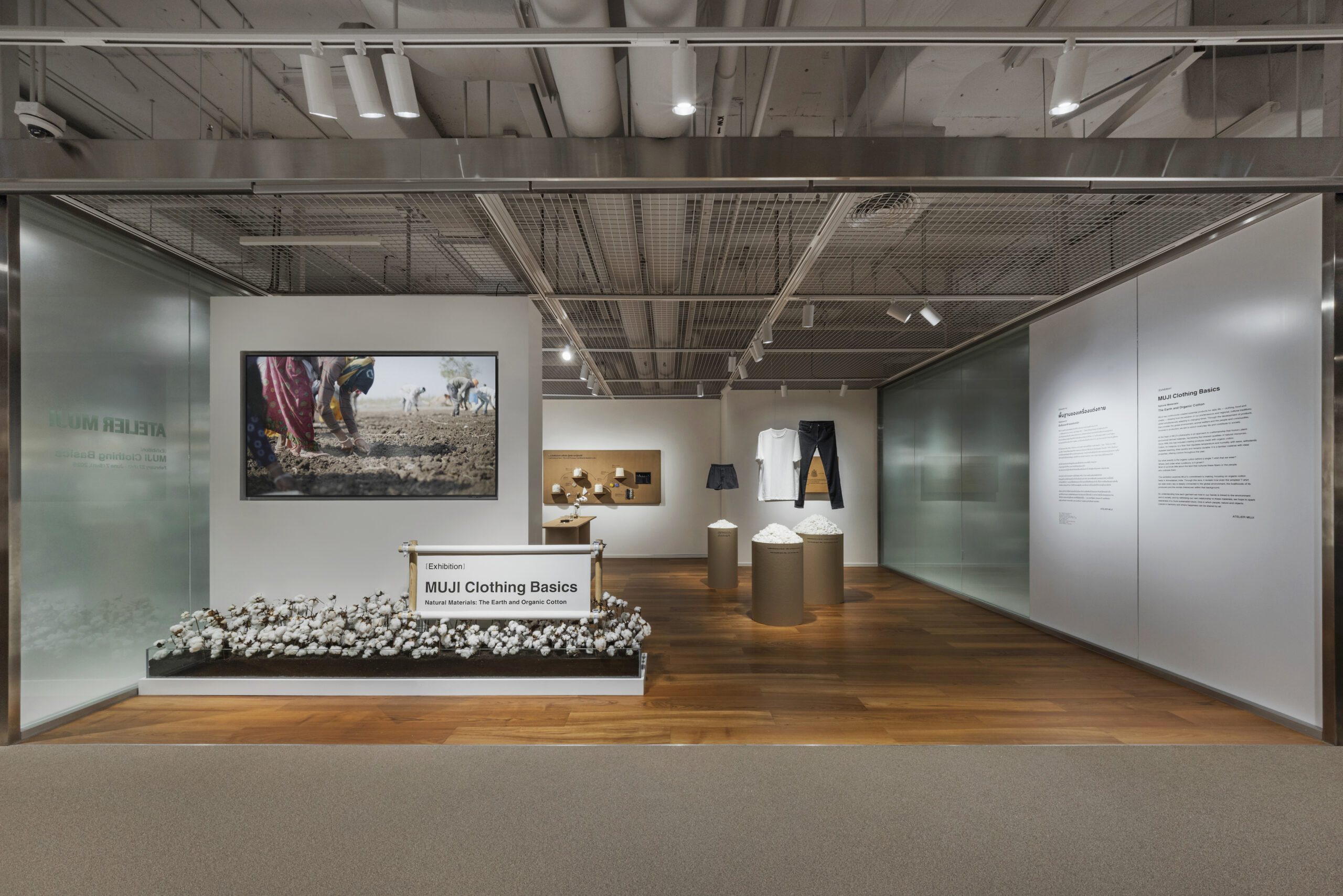 นิทรรศการนี้ถ่ายทอดความตั้งใจของ MUJI ในการสร้างสรรค์ผลิตภัณฑ์ โดยมุ่งสำรวจไร่ฝ้ายออร์แกนิกในเมืองอาเมดาบัด ประเทศอินเดีย มุมมองจากความตั้งใจนี้สะท้อนให้เห็นว่า แม้แต่เสื้อยืดธรรมดาที่เราสวมใส่ในชีวิตประจำวัน ก็มีความเชื่อมโยงอย่างลึกซึ้งกับสิ่งแวดล้อมทั่วโลก วิถีชีวิตของผู้ผลิต และเรื่องราวเบื้องหลังที่ถักทออยู่ในทุกเส้นใย